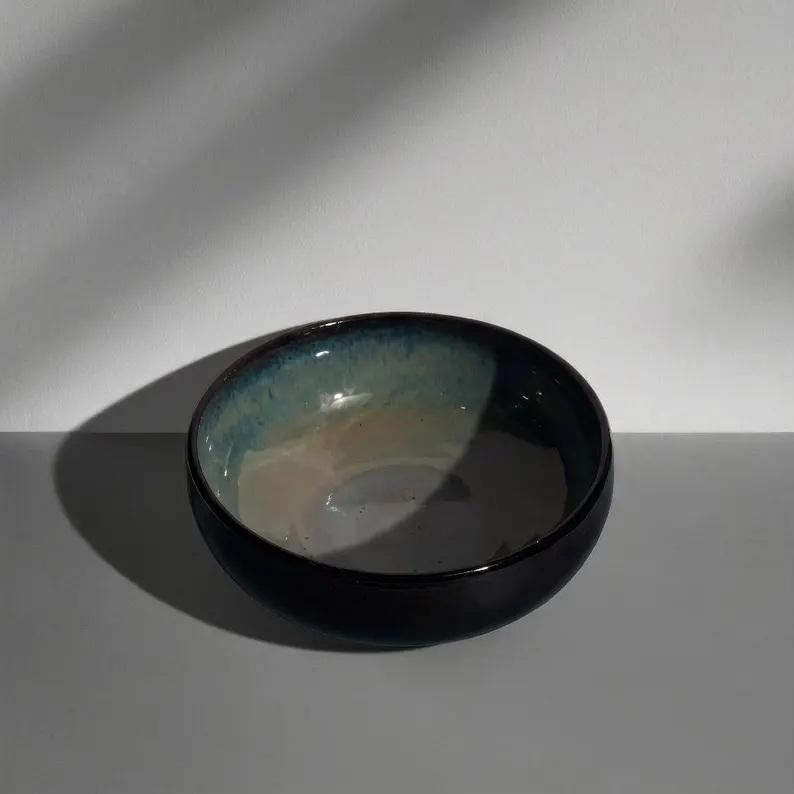 ชามเซรามิกสีน้ำเงินเข้มสุดหรู ดีไซน์โค้งมน เรียบเนียนด้านใน แข็งแรง ทนทาน ปลอดภัยสำหรับอาหาร เหมาะสำหรับตกแต่งโต๊ะอาหารสไตล์ร่วมสมัย
