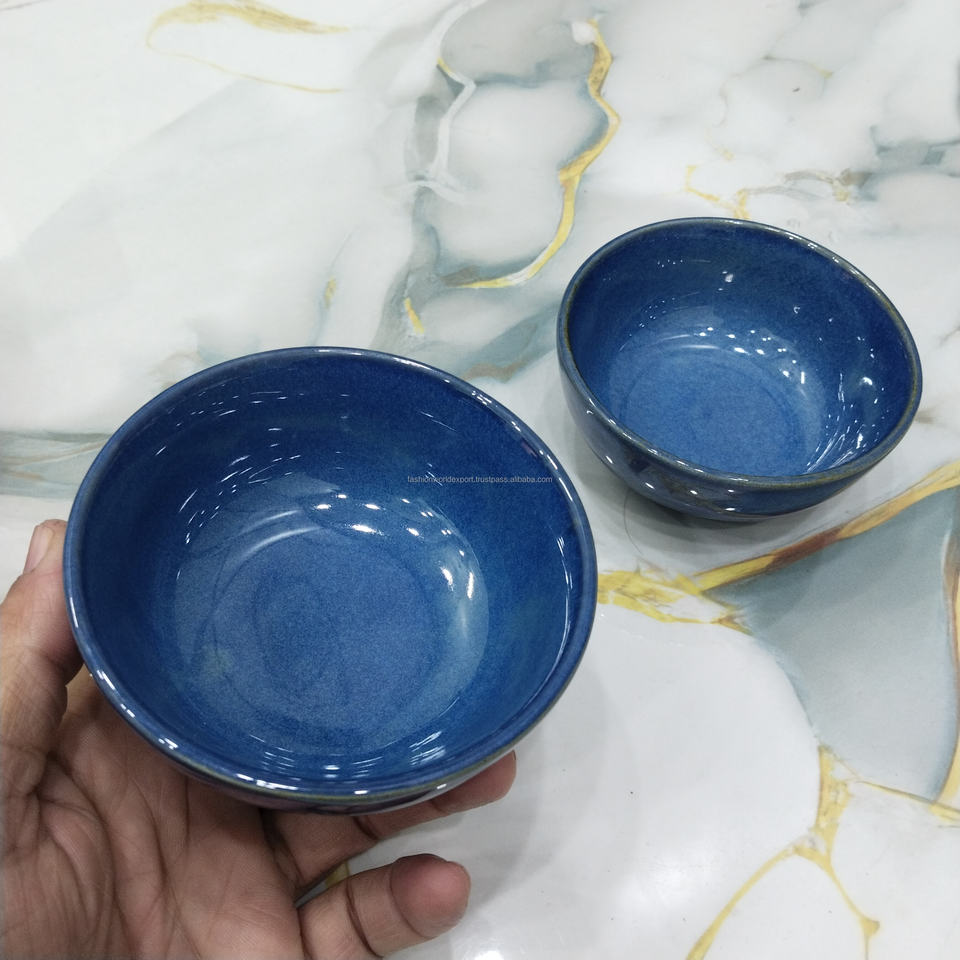 ชามเซรามิกเคลือบมือสีน้ำเงินเข้มสุดหรูสำหรับบ้านสมัยใหม่ ชามสโตนแวร์อเนกประสงค์ เหมาะสำหรับมื้ออาหารประจำวันและโอกาสพิเศษ