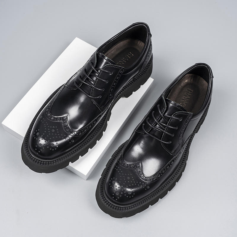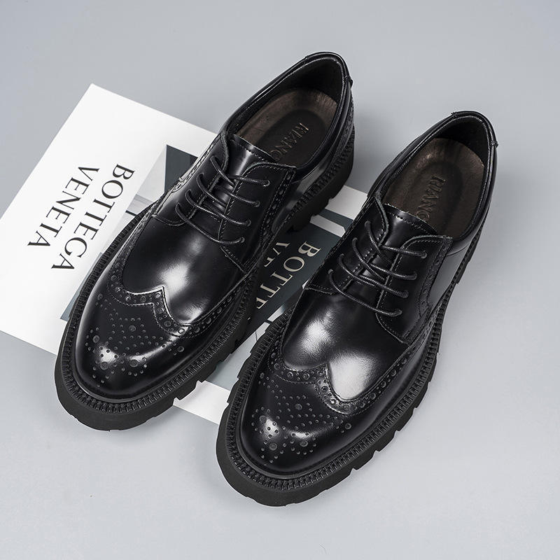 รองเท้าเดอร์บี้ดีไซน์หรูหรา แบบผูกเชือก นุ่มสบาย ลายพราง หนังแท้ สไตล์ลำลองทางธุรกิจ ลายนูนแบบอังกฤษ