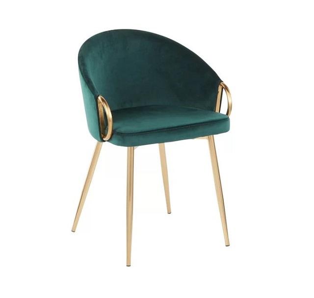 ชุดเดอร์เซ็นท์หรูหราเก้าอี้บ้านสไตล์โซฟาผ้ากำมะหยี่สีเขียวด้านบนหรือด้านหลังมีขาโลหะสีทองเงา