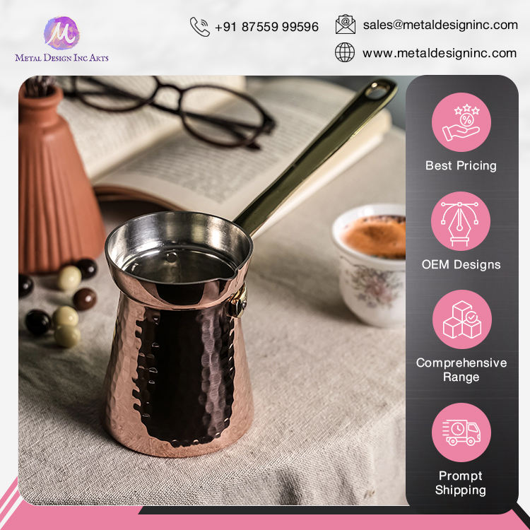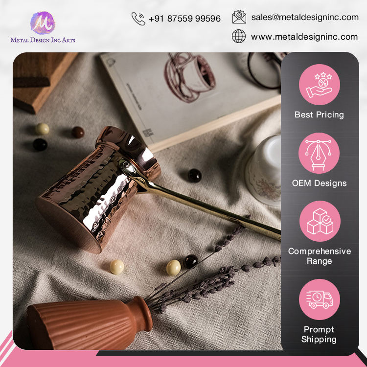 ชื่อผลิตภัณฑ์:หม้อกาแฟตุรกีทำจากทองแดงทุบพร้อมด้ามทองเหลือง
