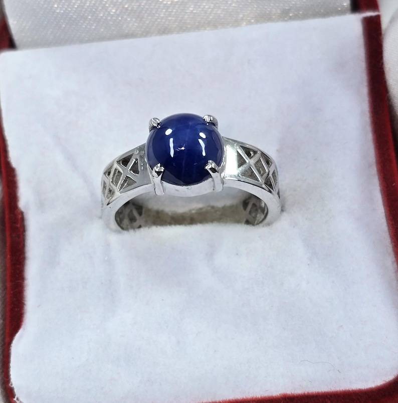 คำหลัก:แหวนไพลินบลูสตาร์ดีไซน์หรู แสดงเอฟเฟกต์ดาวธรรมชาติ