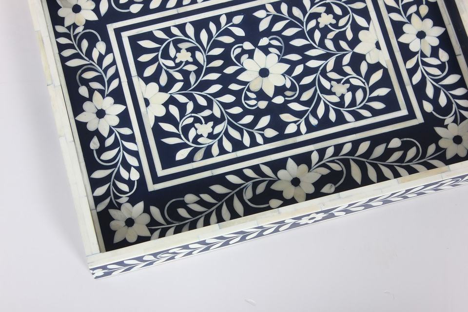 ถาดเสิร์ฟพร้อมแผ่นรองกระดูกสีฟ้าและสีขาวถาดตกแต่งฐานด้วยเรซิ่นและฐาน MDF สำหรับรับประทานอาหารโต๊ะกาแฟและความบันเทิงในบ้าน