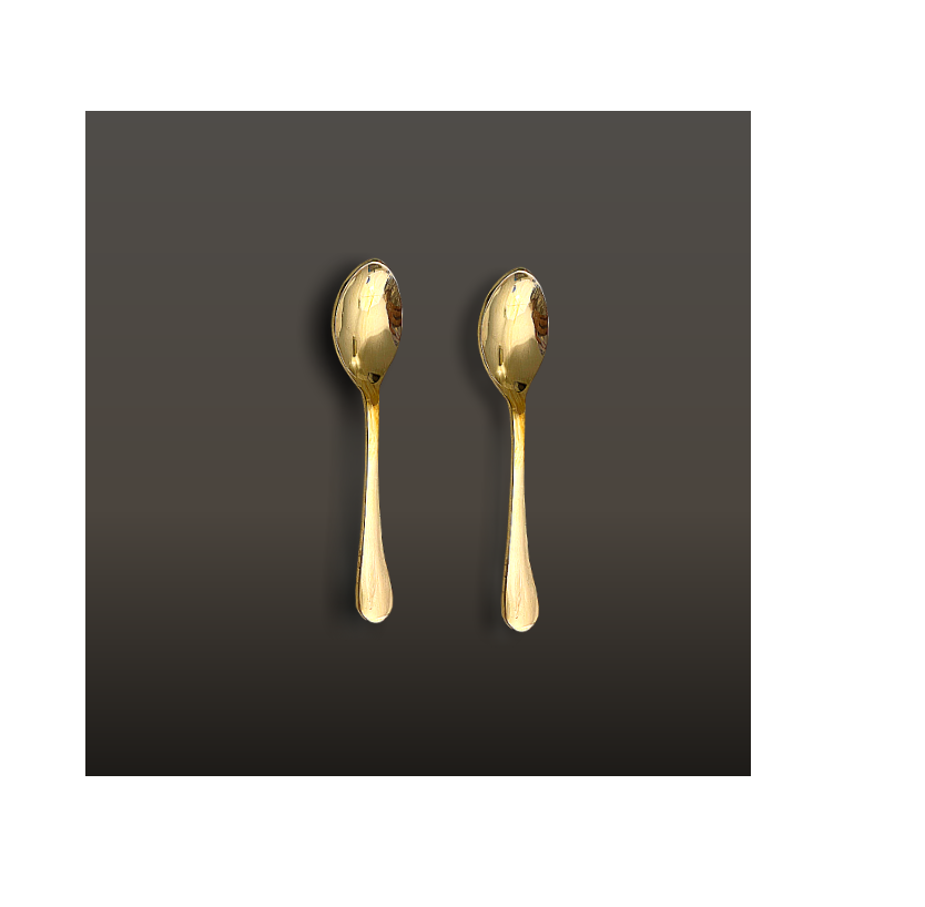 ชุดช้อนขนมหวานและไอศกรีมดีไซน์หรูหรา ทำจากทองเหลือง ด้ามสั้น ชุบทอง ขัดเงาแบบกระจก ชุดช้อนส้อมแบบกำหนดเองสำหรับแจกเป็นของขวัญ