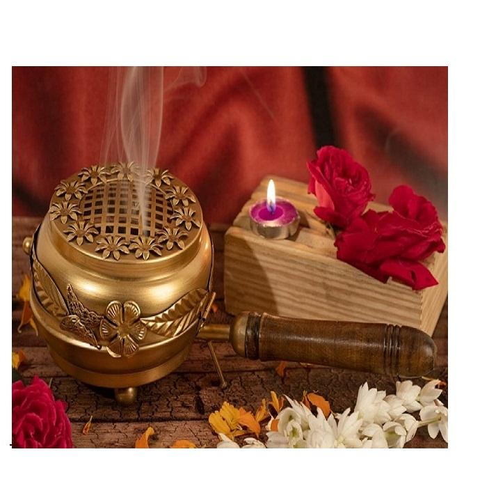 กระถางธูปทองเหลือง Lodan Dani พร้อมด้ามจับไม้สำหรับบ้านดีไซน์หรูหรา