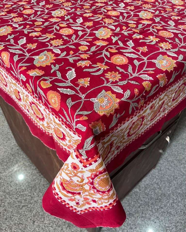 ผ้าปูโต๊ะผ้าฝ้ายพิมพ์ลายดอกไม้ปักด้วยมือสำหรับงานเลี้ยงและงานแต่งงานผ้าคลุมโต๊ะจัดเลี้ยงสำหรับรับประทานอาหารที่บ้าน