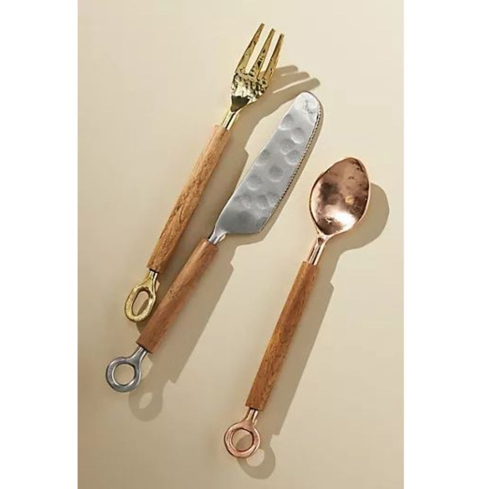 ชุดช้อนส้อมดีไซน์หรูหรา สแตนเลสสตีล พร้อมด้ามจับไม้ สำหรับใช้ในบ้าน โรงแรม และร้านอาหาร