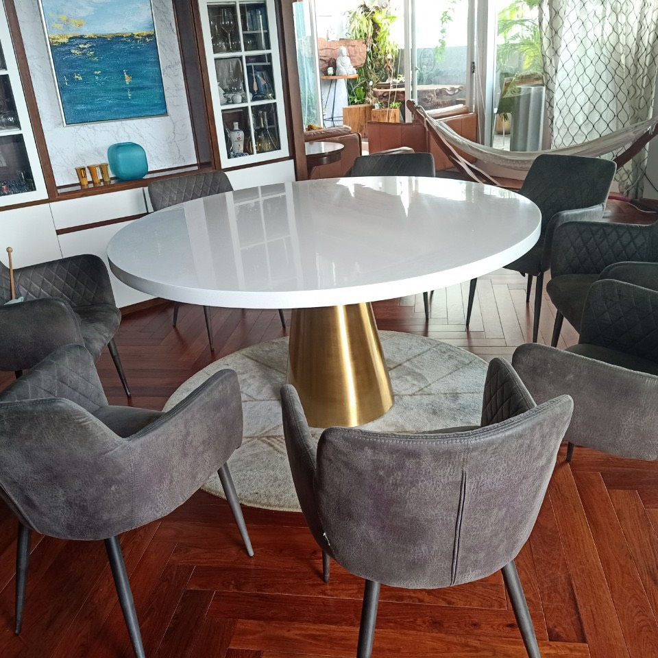 โต๊ะรับประทานอาหารดีไซน์หรูหรา เฟอร์นิเจอร์ภายในบ้าน พร้อมท็อปพื้นผิวแข็ง