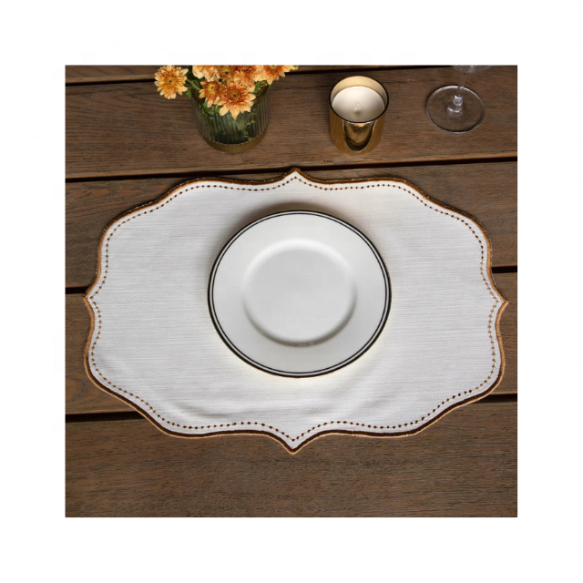 ผ้ารองจานผ้าฝ้ายสีเบจผ้า100% ลายดอกไม้14X18นิ้ว250กรัมผ้าถักลายดอกไม้สำหรับงานแต่งงาน
