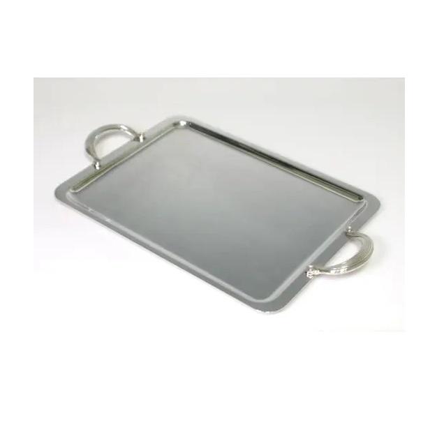 ถาดเสิร์ฟโลหะสแตนเลสทรงสี่เหลี่ยมผืนผ้าทนทานดีไซน์หรูหราทำด้วยมือคุณภาพสูง