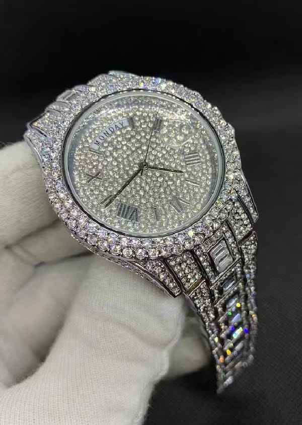 นาฬิกาเพชรมอสซาไนต์น้ำแข็งดีไซน์หรูหรา