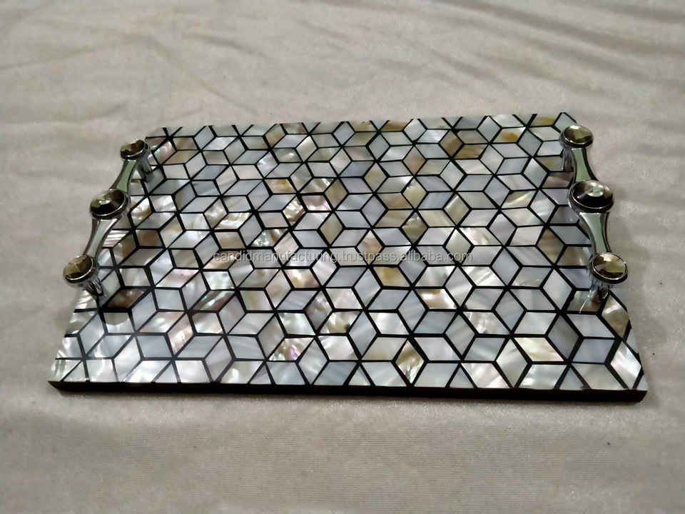 ชุดถาดเสิร์ฟทรงสี่เหลี่ยมผืนผ้าสำหรับร้านอาหารโรงแรมหรือห้องครัวแบบฝังมุกนำเข้าดีไซน์หรูหรา