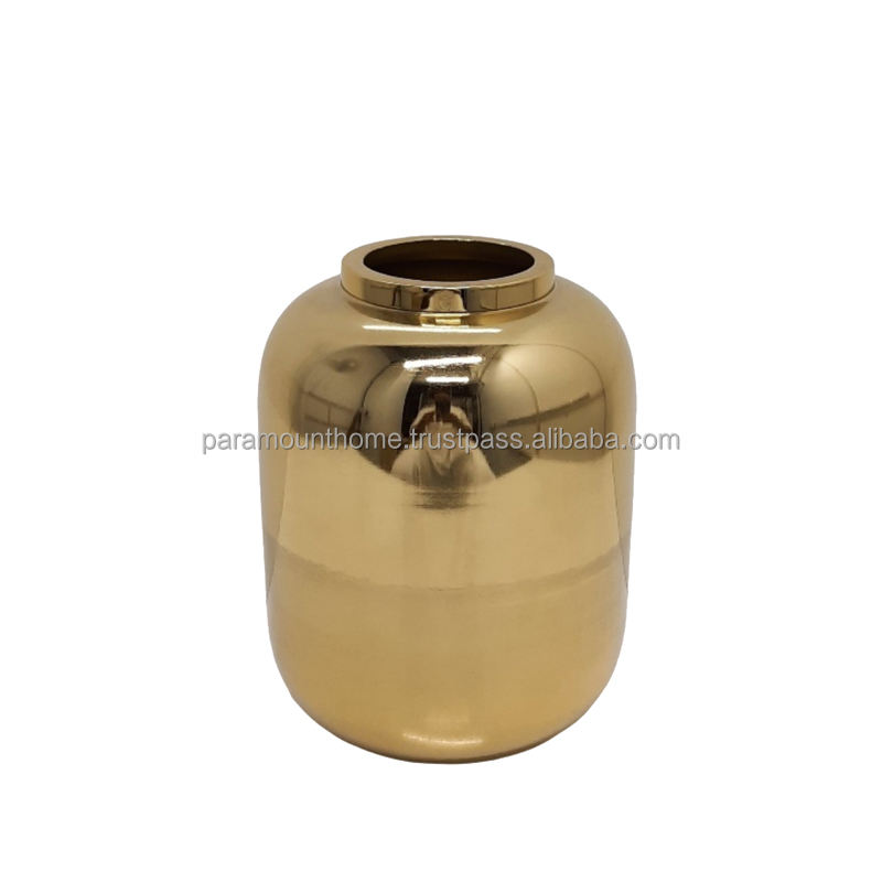 แจกันดอกไม้เหล็กดีไซน์หรู สีทอง กระถางดอกไม้โลหะสำหรับตกแต่งห้องนั่งเล่นและร้านอาหาร ผลิตด้วยมือ จำนวนมาก