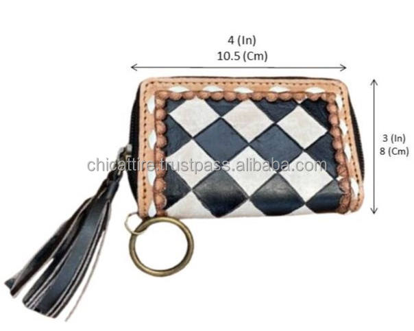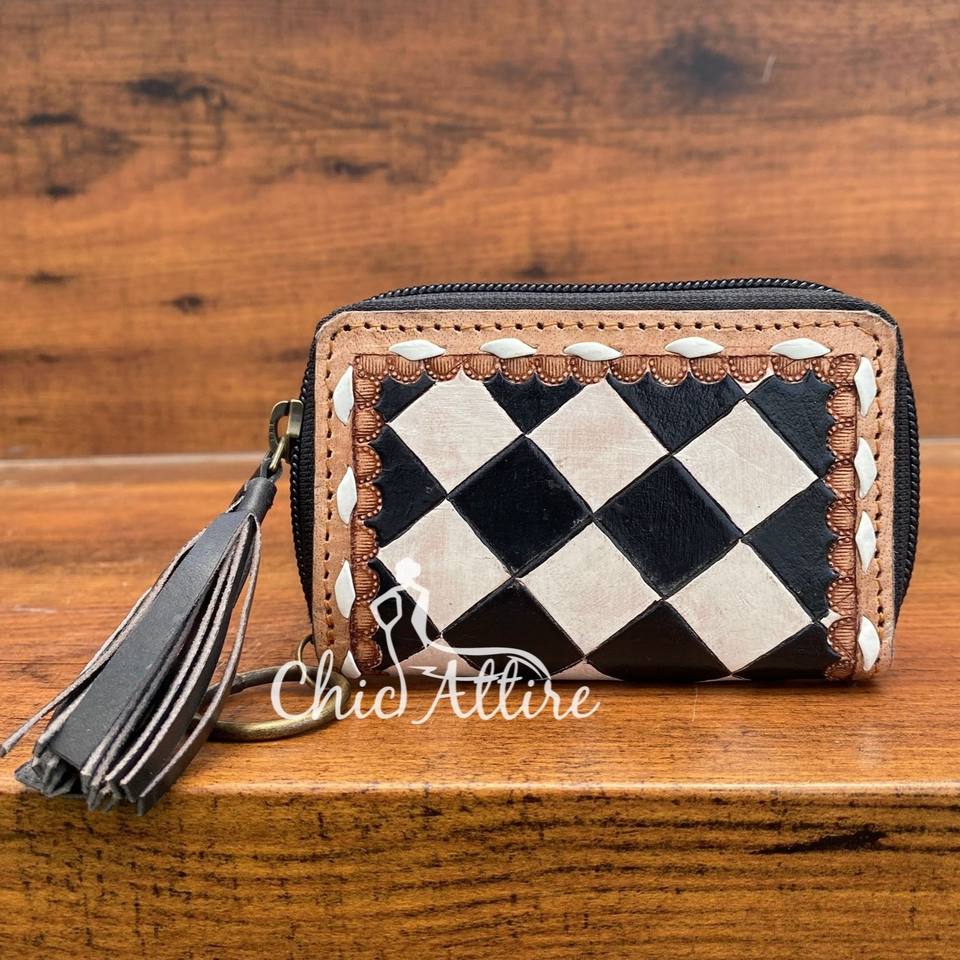 Product name:Hand Tooled Checkered Pattern Mini Coin Purse
