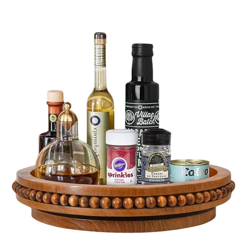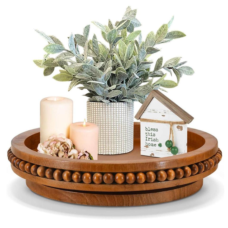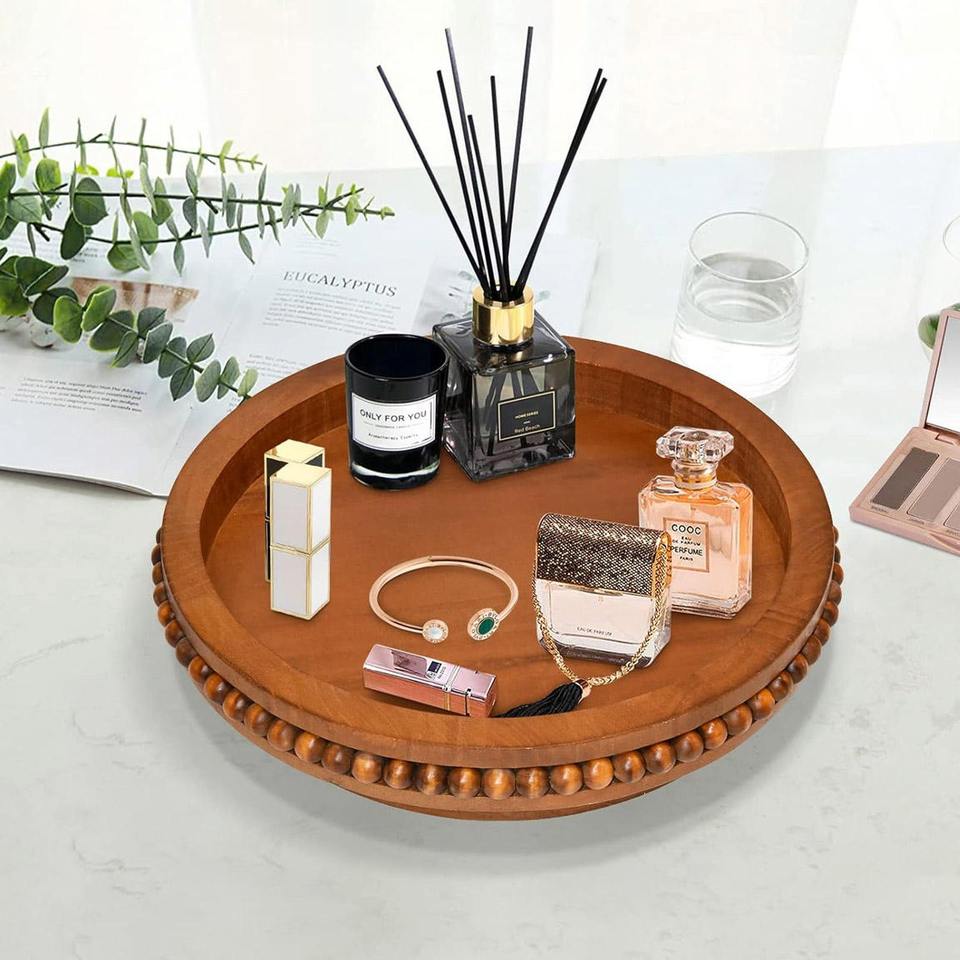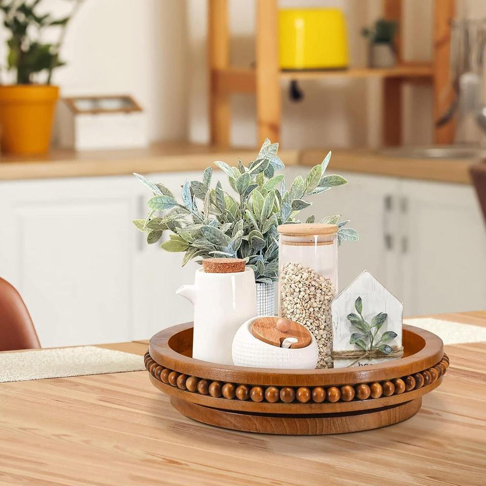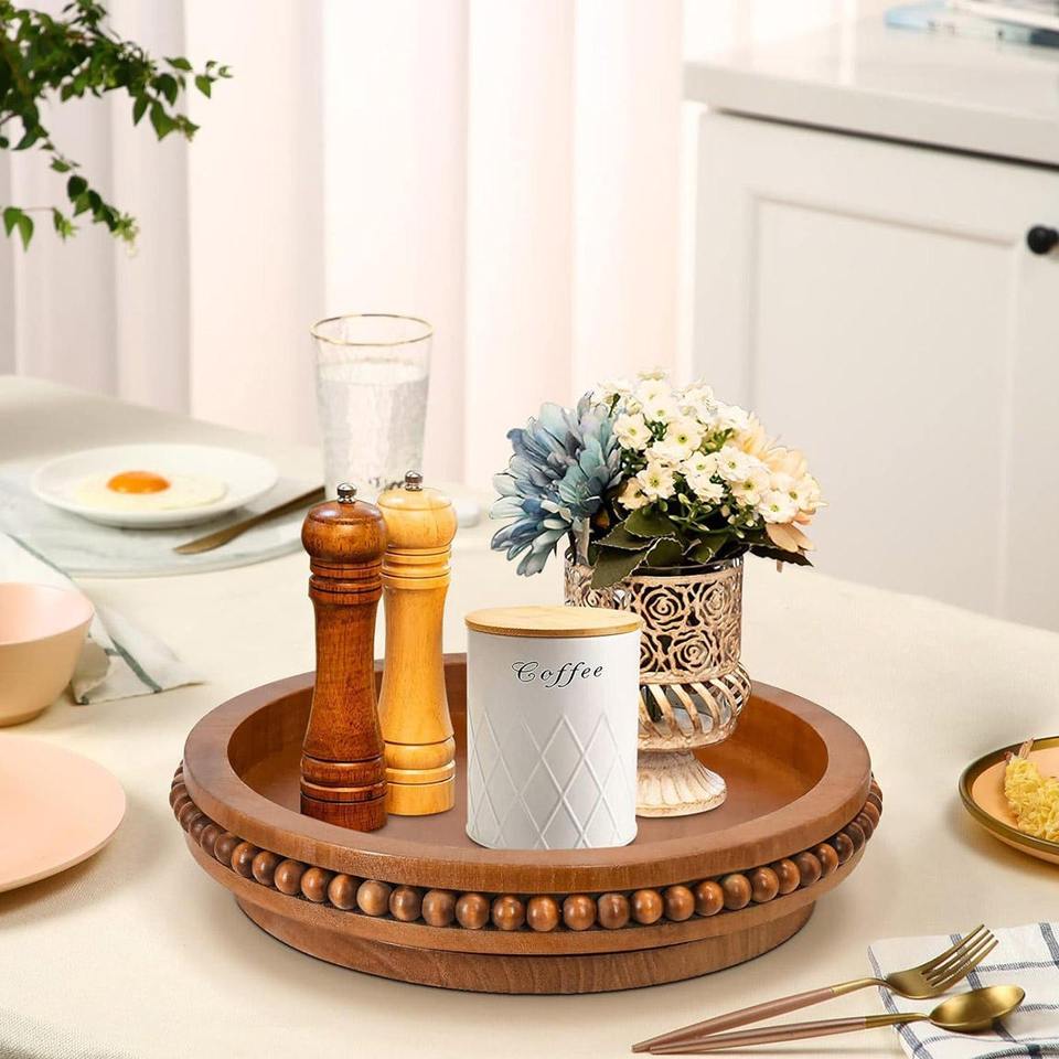 ถาดไม้มะม่วงดีไซน์หรูหรา ถาดหมุนแบบ Lazy Susan ผิวเรียบเนียน ทำด้วยมือ 100% อเนกประสงค์สำหรับโต๊ะครัว ตู้เก็บของ