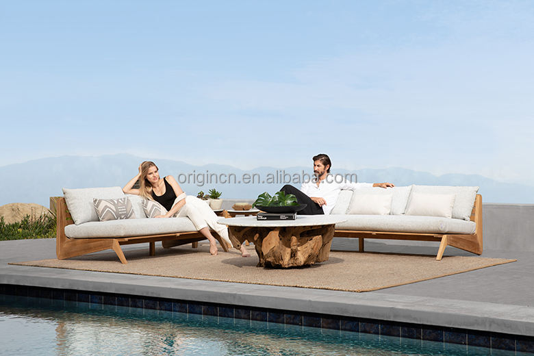 ชุดโซฟาเฟอร์นิเจอร์ดีไซน์หรูหราสำหรับพักผ่อนกลางแจ้ง ที่นั่งแบบมีพนักพิงสูงคล้ายม้านั่ง ทำจากไม้สักเกรด A พร้อมเบาะรองนั่งแบบแห้งเร็ว สไตล์โมเดิร์น