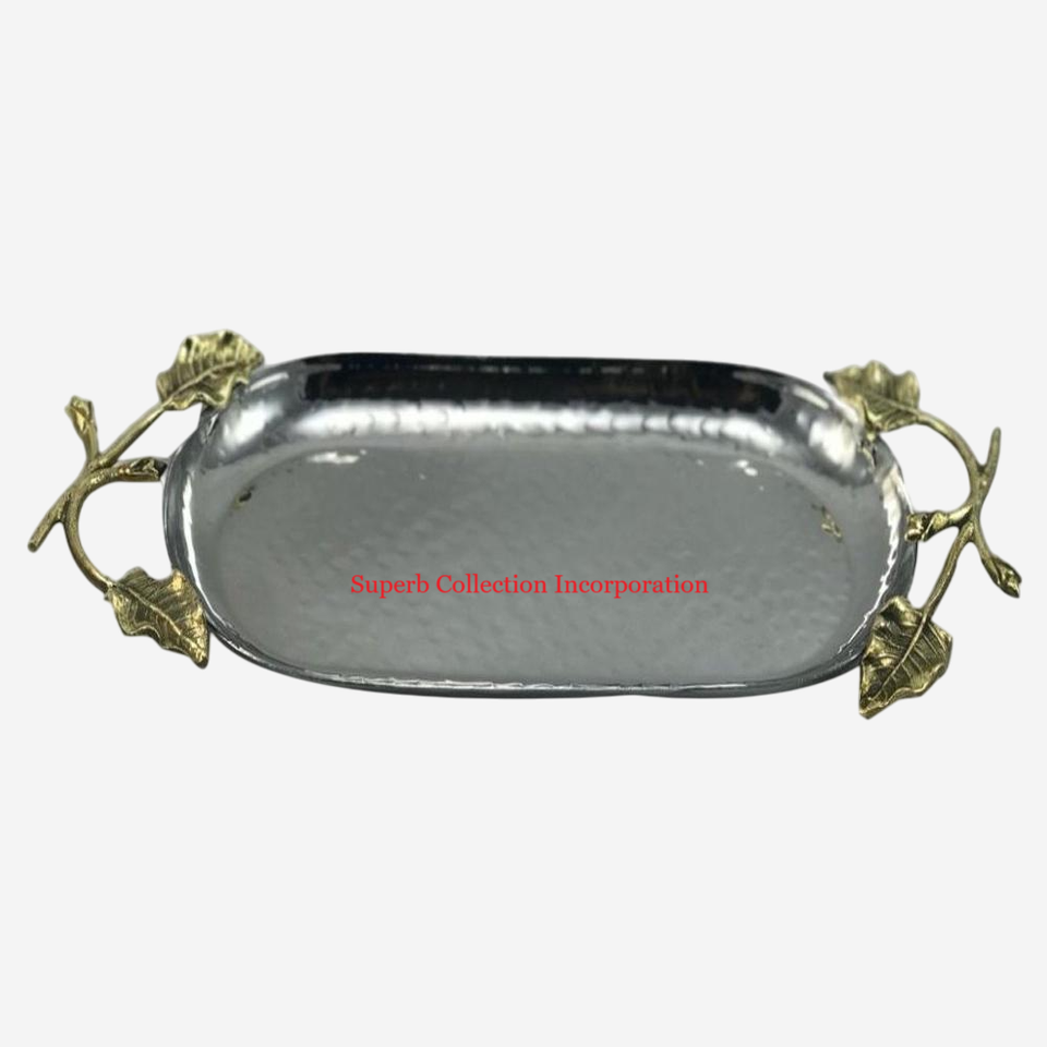 ถาดโลหะทรงรีพร้อมด้ามจับดีไซน์สุดหรูถาดเสิร์ฟโลหะสำหรับบ้านและโรงแรม