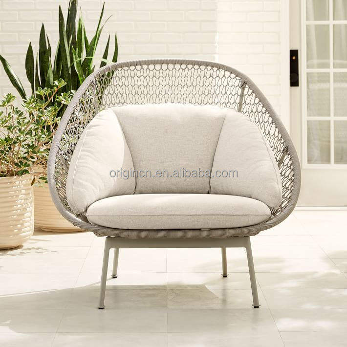 เฟอร์นิเจอร์ระเบียงกลางแจ้งดีไซน์หรูหรา โครงอะลูมิเนียม เบาะแห้งเร็ว เก้าอี้หวายสานมือ