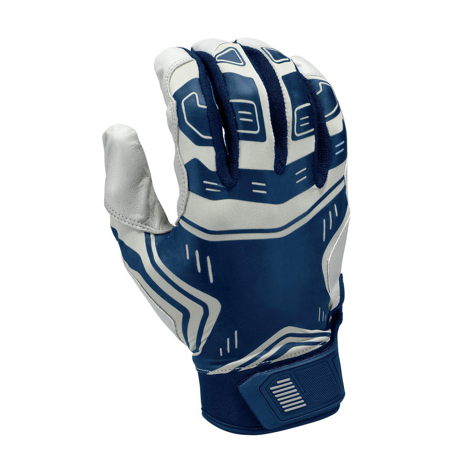ถุงมือซอฟต์บอลสำหรับผู้ชายถุงมือเบสบอลเล่นกีฬาดีไซน์สีฟ้าพร้อมโลโก้และการออกแบบที่กำหนดเอง
