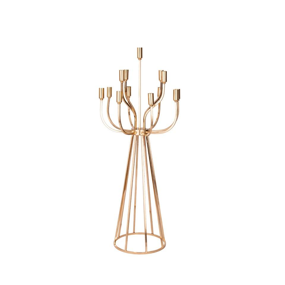 เชิงเทียนโลหะสีทองดีไซน์หรูหรา 10 ที่วางในตัวเดียว ตัวเชิงทำจากโลหะทั้งชิ้น ขนาด 19.5x43 ซม.