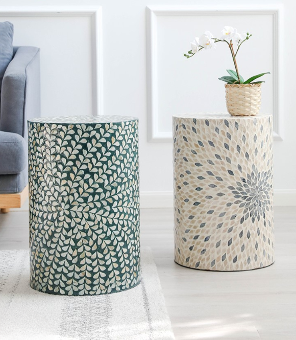 เก้าอี้สตูลดีไซน์หรูสำหรับคุณแม่,เก้าอี้สตูลฝังมุกโมเสคเปลือกหอยธรรมชาติสำหรับเฟอร์นิเจอร์