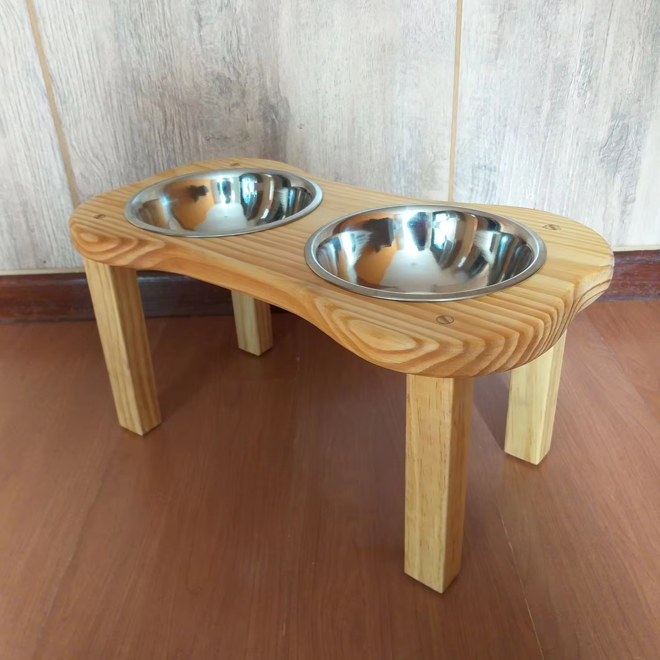 ชามอาหารสัตว์เลี้ยงไม้ดีไซน์หรูหรา พร้อมขาตั้งยกสูงและถาดอาหารสุนัขตามหลักสรีรศาสตร์เพื่อการย่อยอาหารที่ดีขึ้น จากซัพพลายเออร์อินเดีย