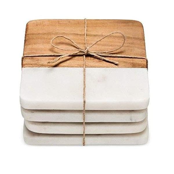 ถาดรองแก้วไม้และหินอ่อนดีไซน์หรูหราถาดรองแก้วเครื่องดื่มขนาดต่างๆเสื่อไม้สำหรับเครื่องดื่มร้อนและเย็น