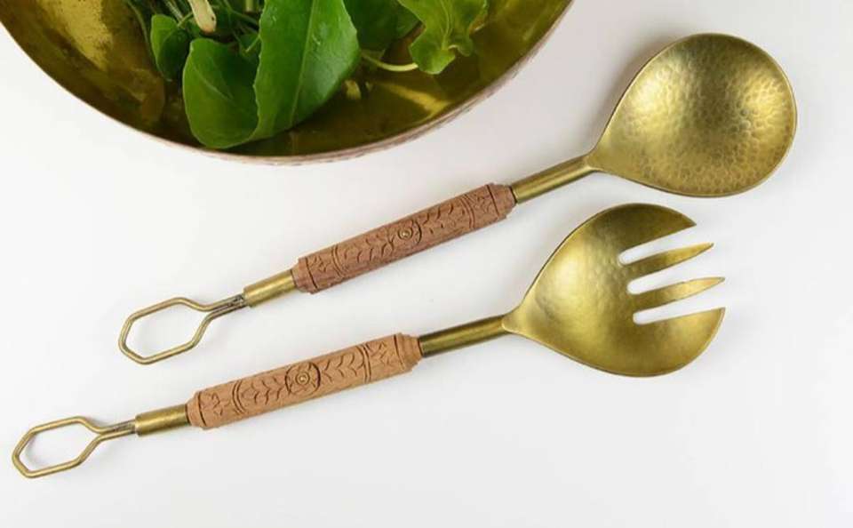 ชุดช้อนส้อมสแตนเลสสตีลทำมือ ดีไซน์หรูหรา ยั่งยืน พร้อมเคลือบทอง สำหรับโต๊ะอาหาร