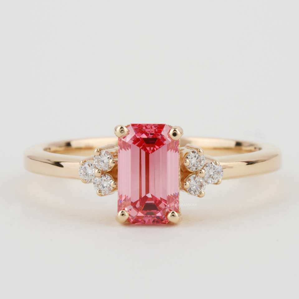 แหวนหมั้นทอง14K ดีไซเนอร์หรูพร้อมด้วยเพชร1CT มรกตและห้องทดลองเจียระไนแบบส่วนตัวสำหรับงานแต่งงาน