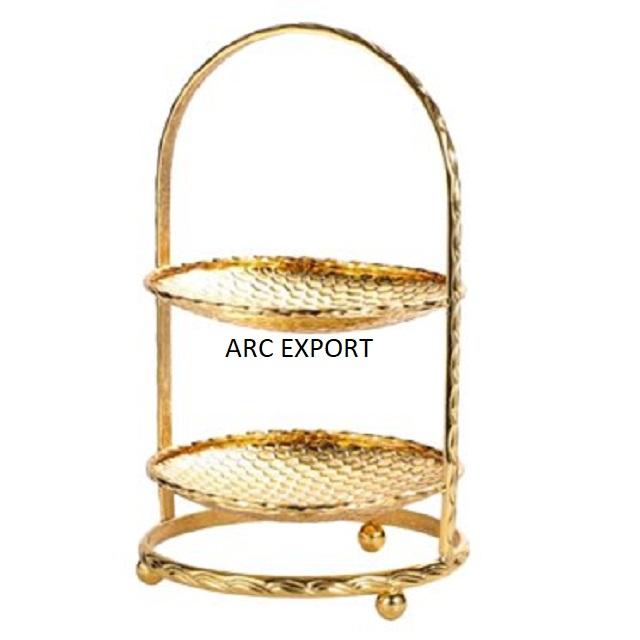 ขาตั้งตกแต่งเค้ก2ชั้นดีไซเนอร์หรูหราสีขาวและสีทองแท่นวางเค้กขนาดใหญ่สำหรับงานแต่งงาน