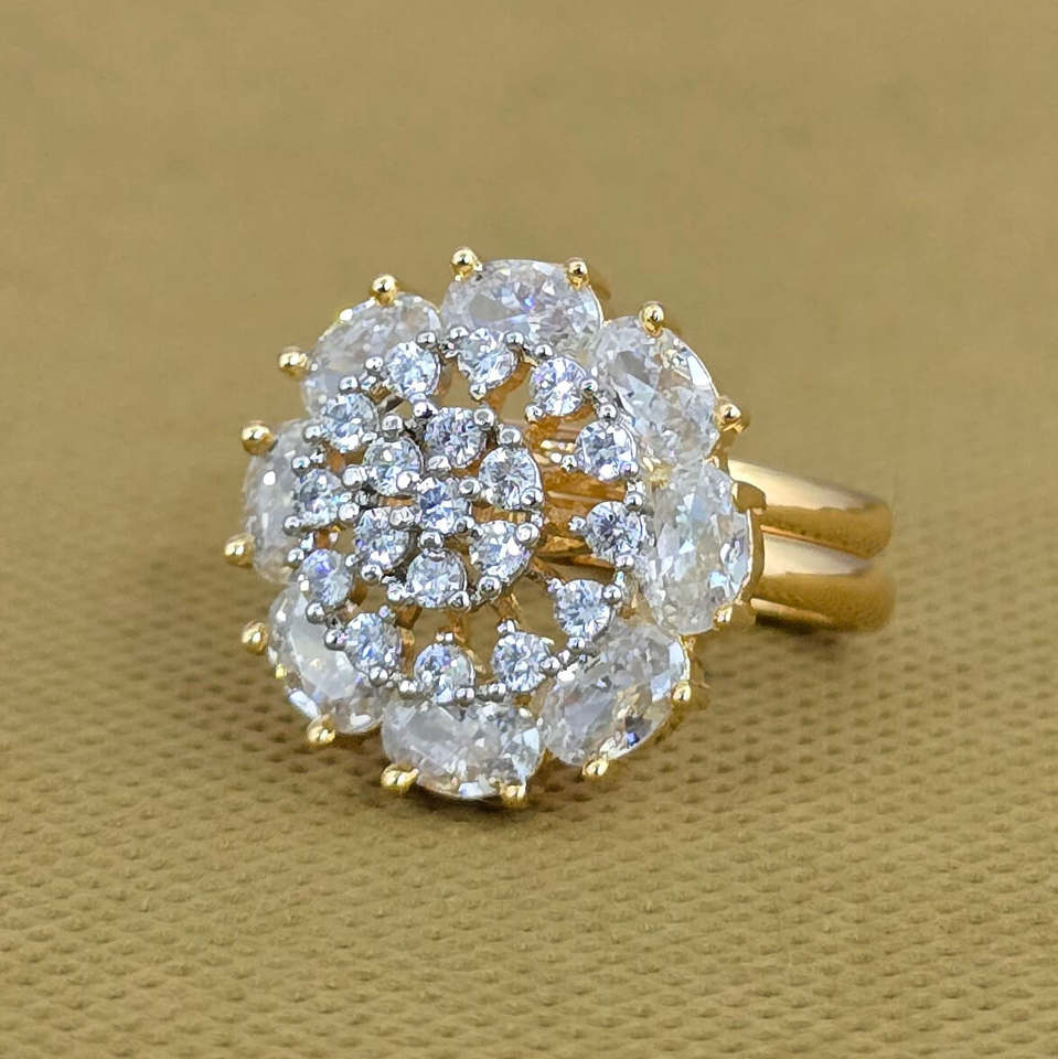 แหวนแฟชั่น2โทนเซอร์โคเนียทรงลูกบาศก์ปรับได้ดีไซน์หรูหรา