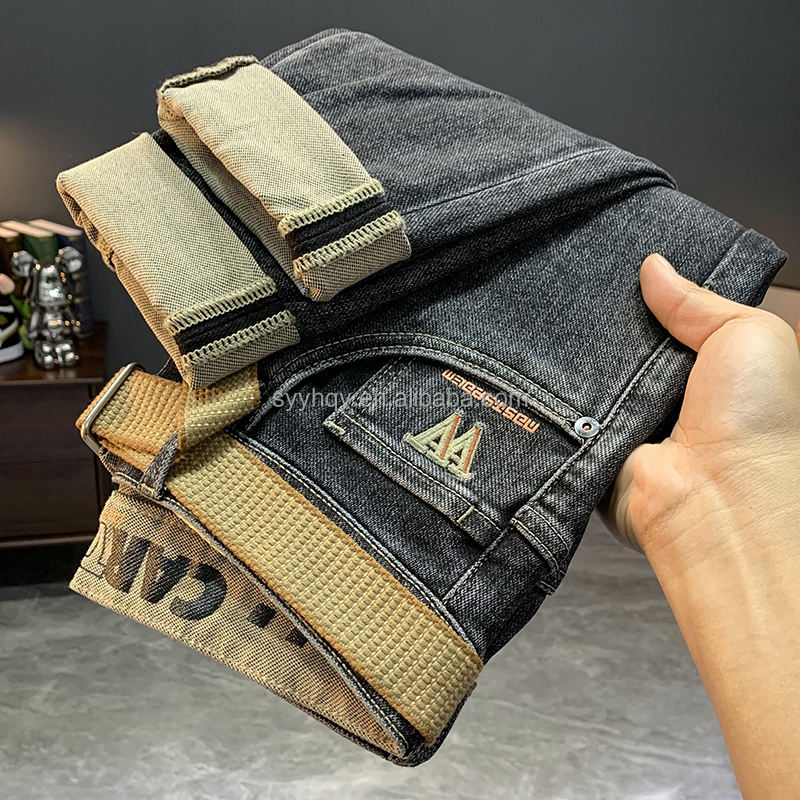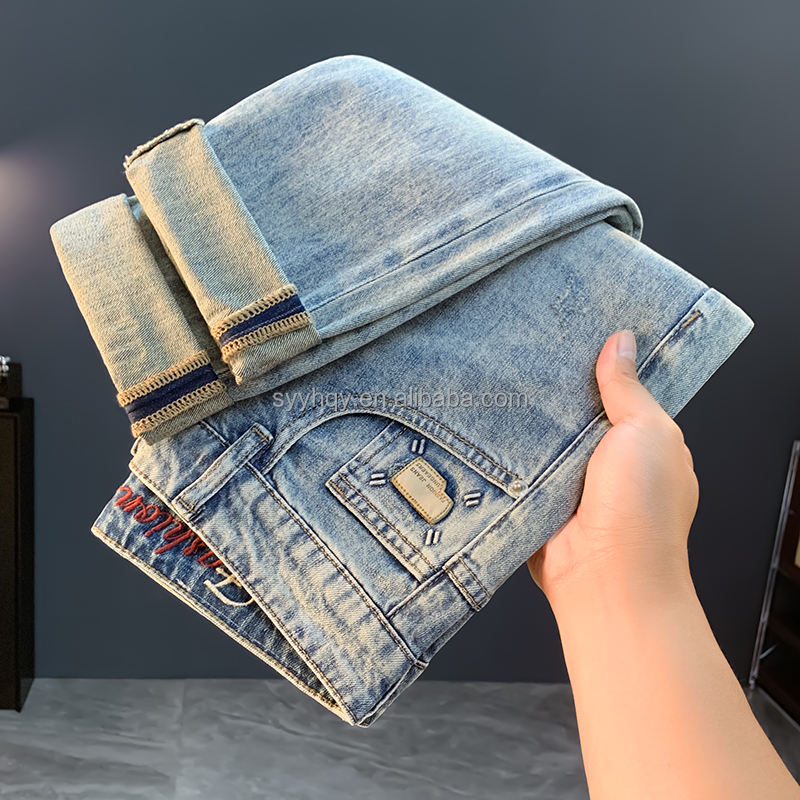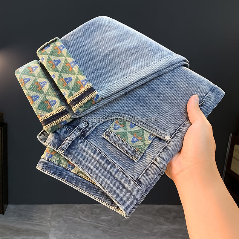 Luxury Designer Brand Men's Straight Leg Jeans High-quality Summer Stretch Torn Denim Fabric High Street Hip-hop Style Weaving