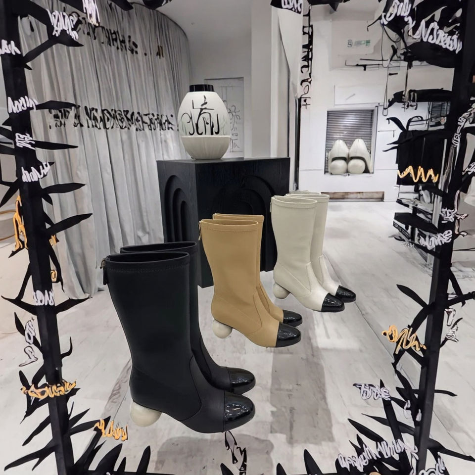 รองเท้าบูทหนังแท้คุณภาพสูงระดับ 5A แบรนด์ดีไซเนอร์หรูหรา หัวแหลม ปลายเคลือบเงา พื้นรองเท้าและพื้นรองเท้าด้านในทำจากยาง สำหรับผู้หญิง