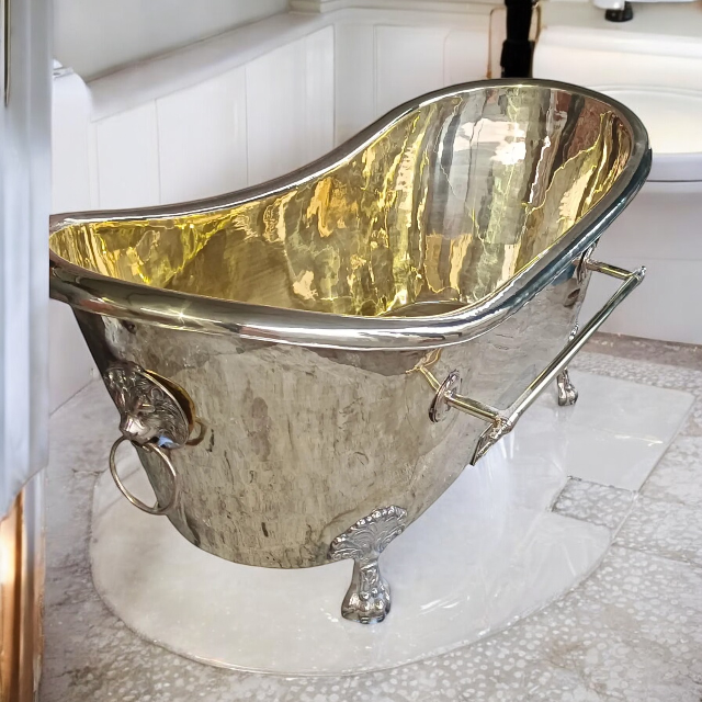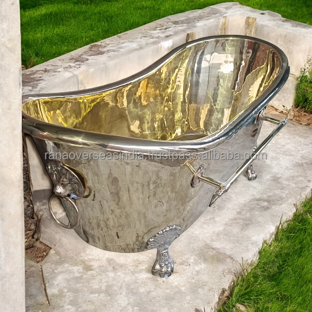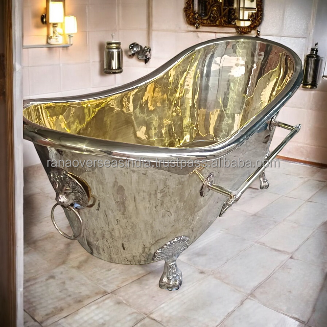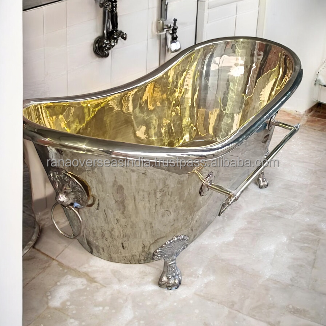 อ่างอาบน้ำทองเหลืองทรงรีแบบตั้งพื้น ดีไซน์หรูหรา ทันสมัย คลาสสิก เป็นมิตรกับสิ่งแวดล้อม ทนทาน รับทำโลโก้สำหรับโรงแรม มีหลายขนาด