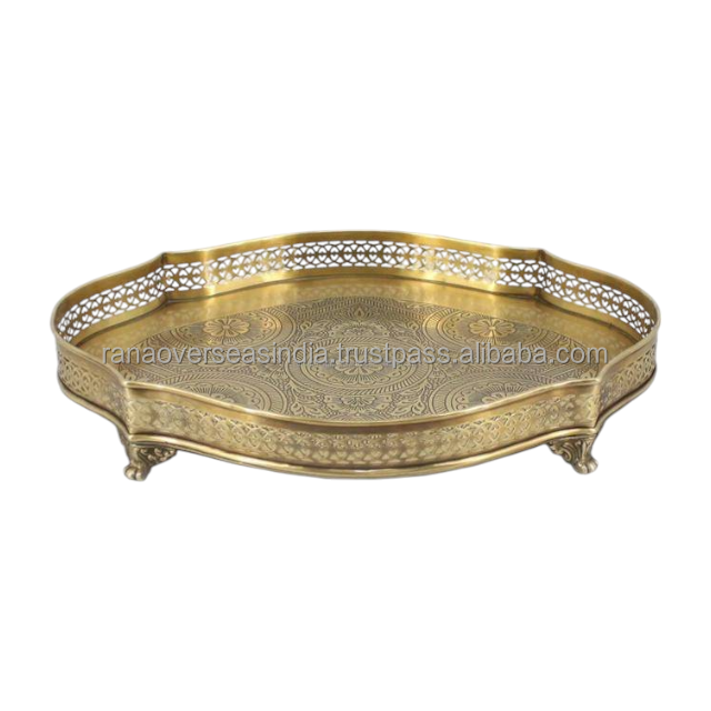 ถาดเสิร์ฟทองเหลืองสำหรับนักออกแบบที่หรูหราถาดโลหะเคลือบตกแต่งพร้อมดีไซน์การตัดในราคาที่ดีที่สุดจากผู้ผลิตที่เชื่อถือได้