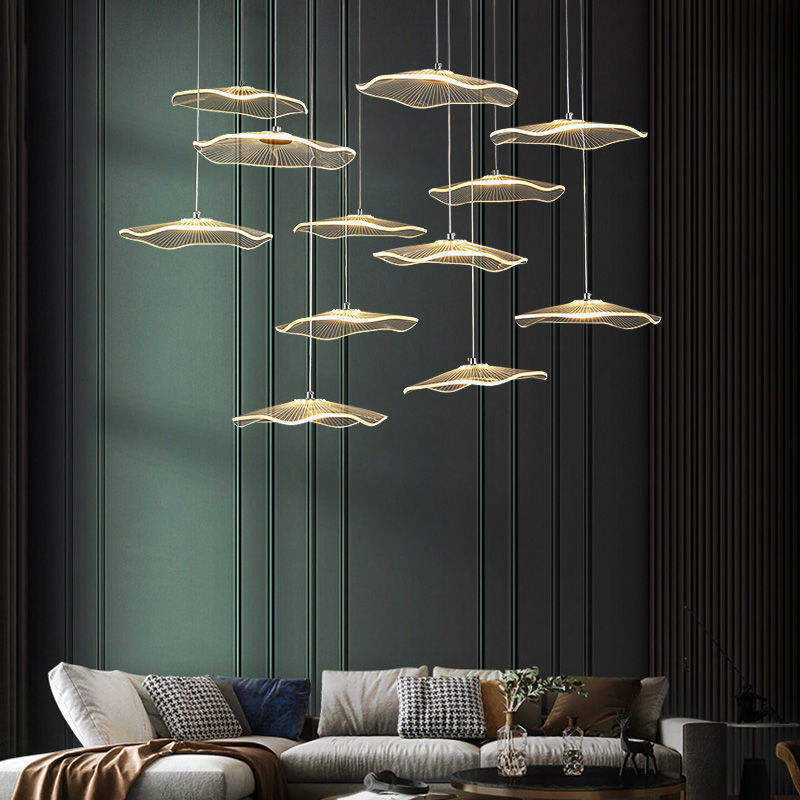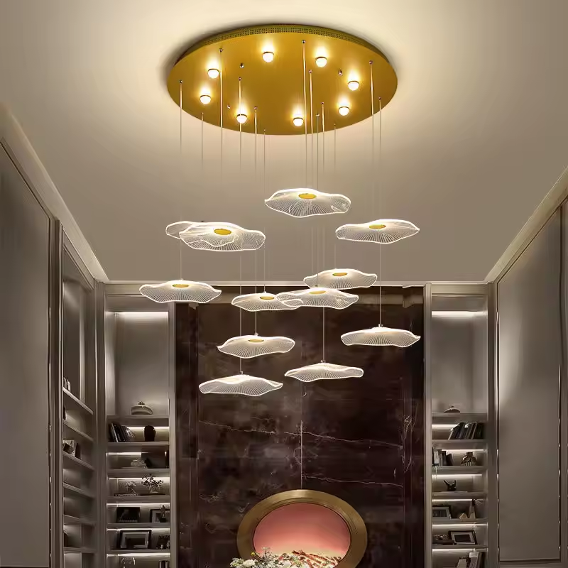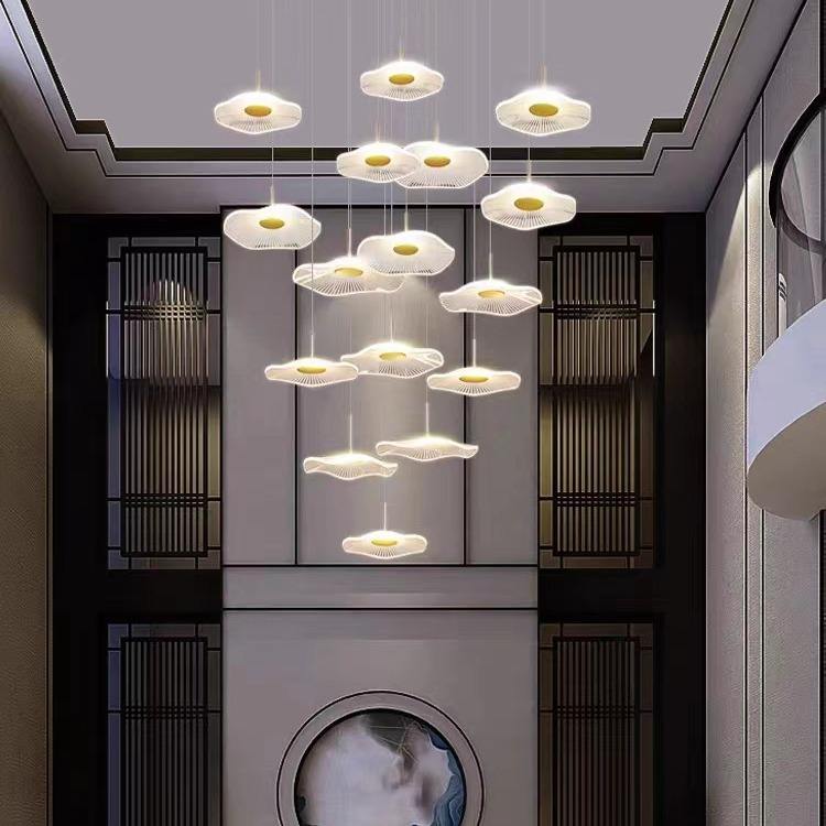 โคมระย้าดีไซน์หรูหราบันไดอะคริลิคดอกบัวไฟ LED สำหรับตกแต่งบ้าน