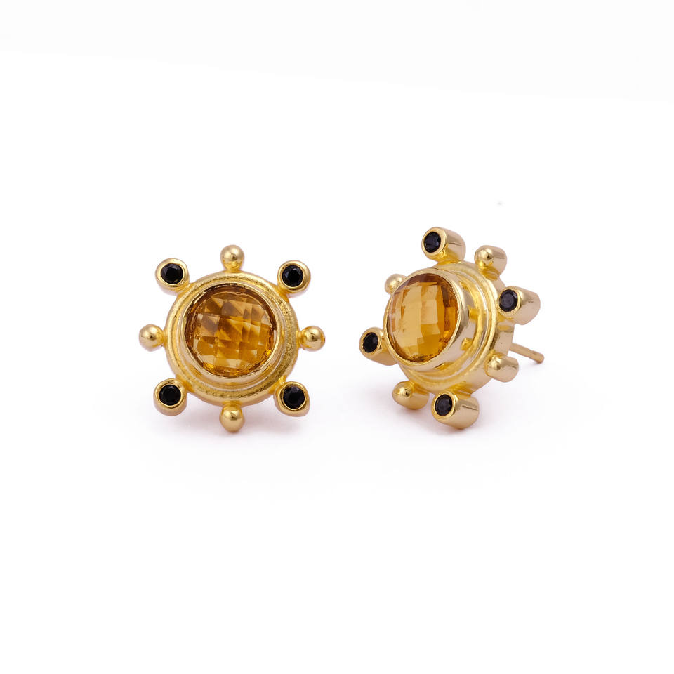 ต่างหูเม็ดเดี่ยวสีดำซิทรีนจากนักออกแบบที่หรูหราต่างหูหินอัญมณีคู่ต่างหูทำด้วยมือเครื่องประดับที่เรียบง่าย