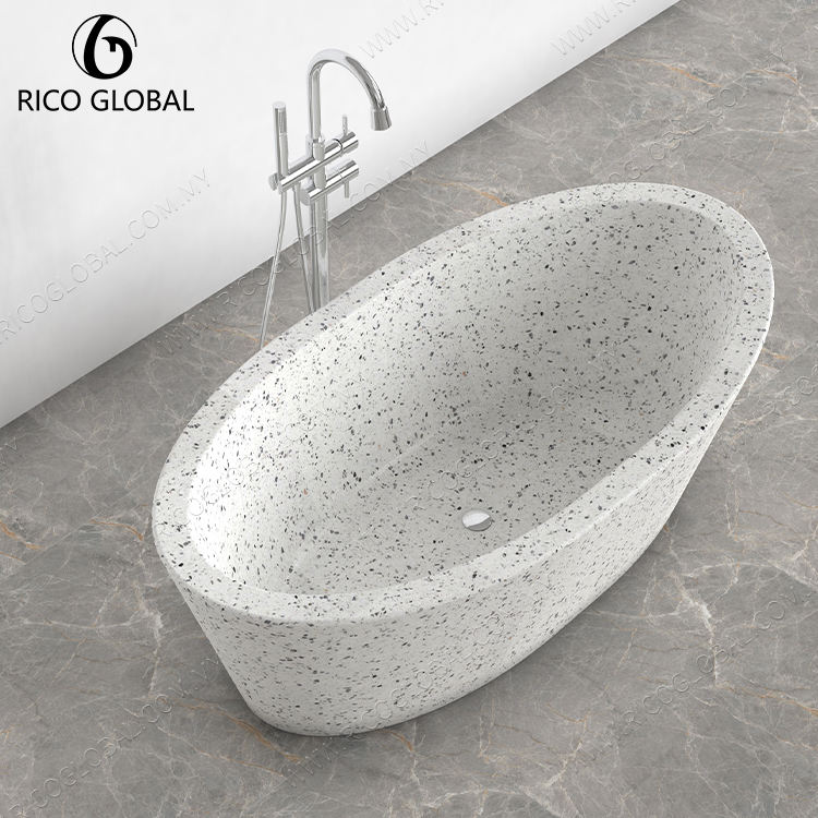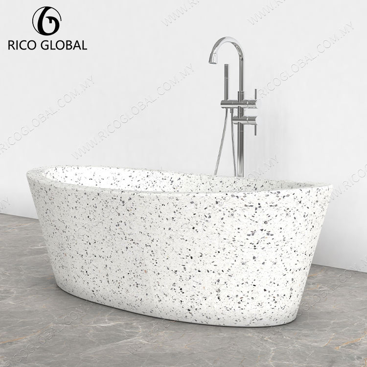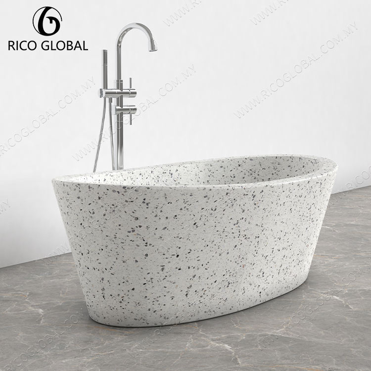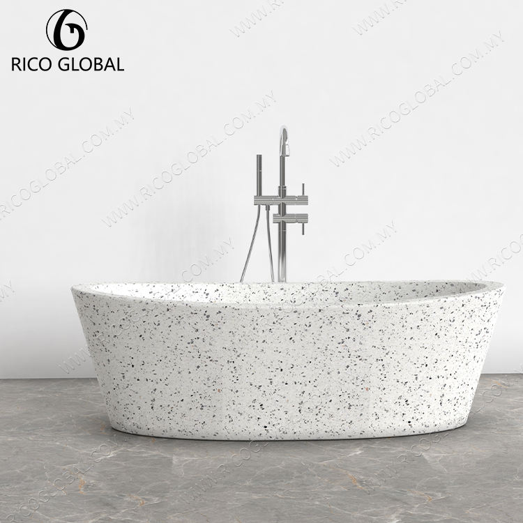 อ่างอาบน้ำหินเทอร์ราซโซแบบลอยตัว ดีไซน์หรูหรา ผลิตโดย OEM อุปกรณ์ตกแต่งห้องน้ำระดับพรีเมียมจากมาเลเซีย