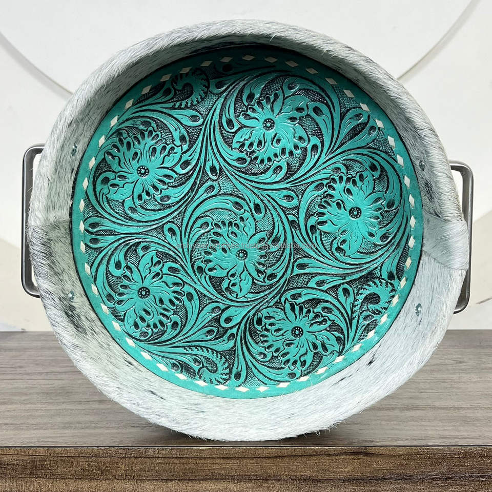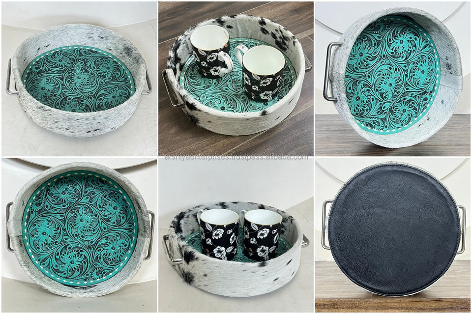 Type:Hand Tooled Cowhide Leather Serving Tray