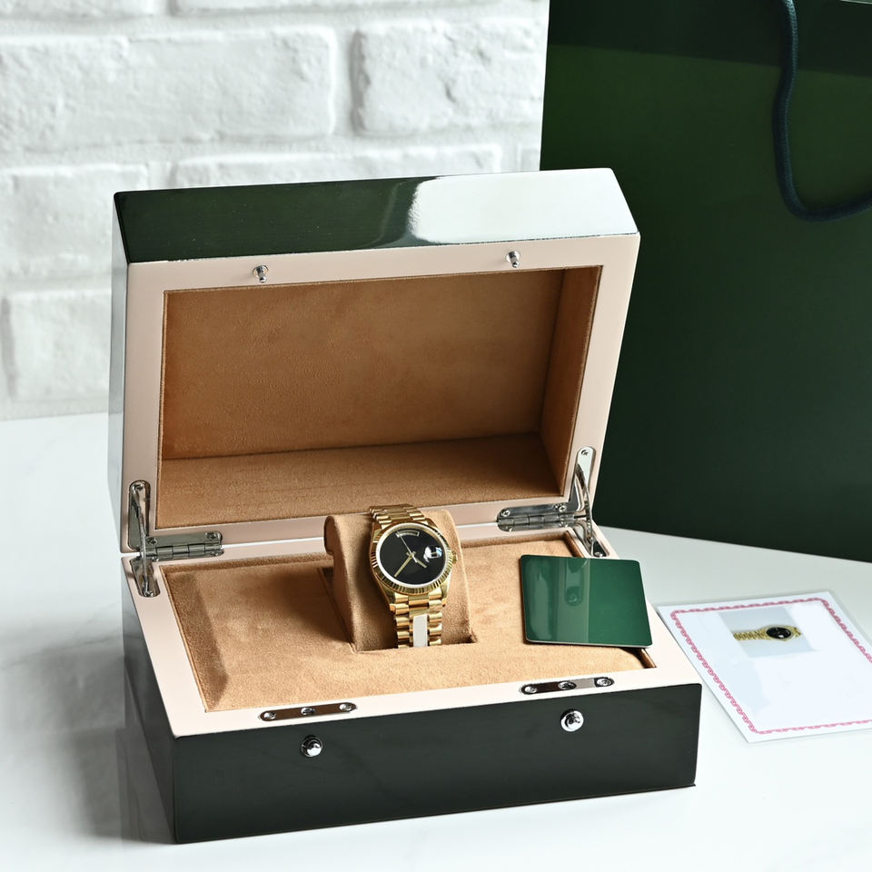นาฬิกาข้อมือผู้ชายแบรนด์หรู ดีไซน์เนอร์ คุณภาพสูง รับทำโลโก้ ตัวเรือนไม้สีเขียว สายหนัง PU นาฬิกาหรูระดับพรีเมียม ผลิตในประเทศจีน