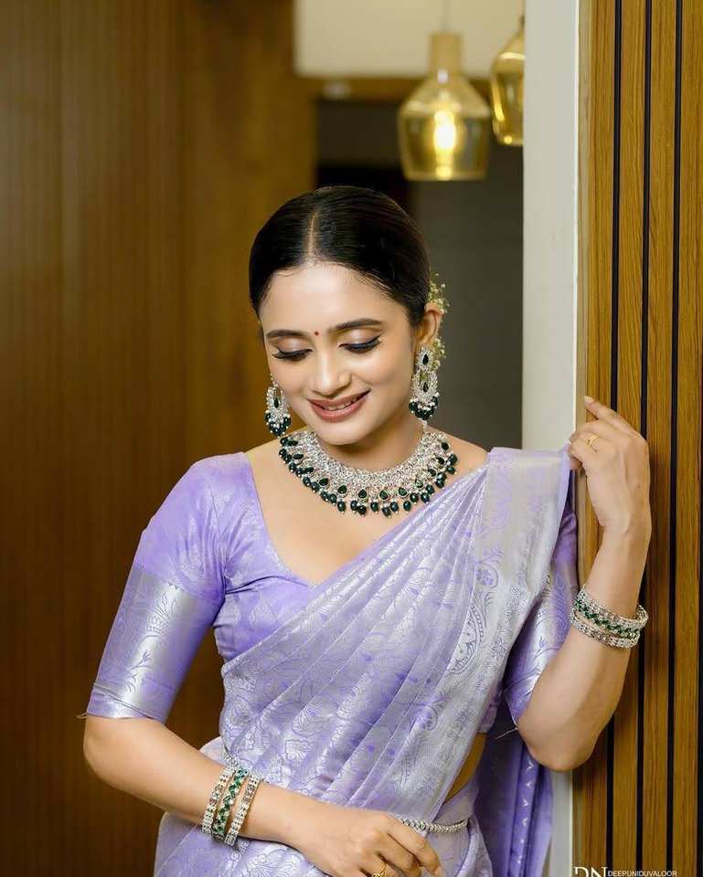 ผ้าส่าหรีไหมอันอบอุ่นแบบบาณาเรสีสำหรับผู้หญิง