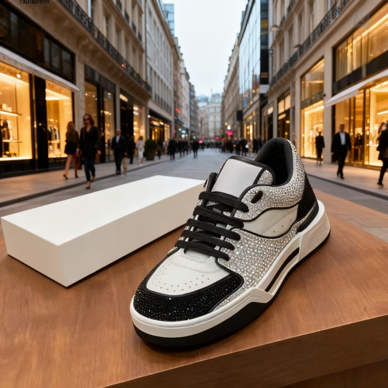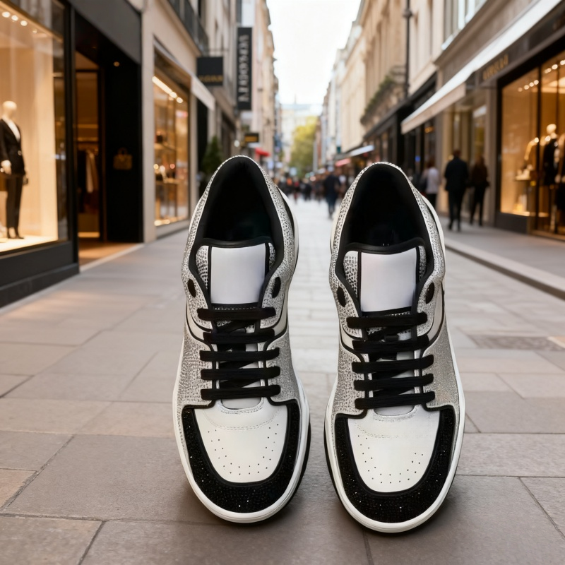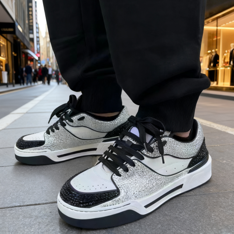 รองเท้าผ้าใบดีไซน์หรูประดับคริสตัล - รองเท้าลำลองคุณภาพสูงสำหรับผู้ชาย เหมาะสำหรับกิจกรรมกลางแจ้ง เดิน วิ่ง