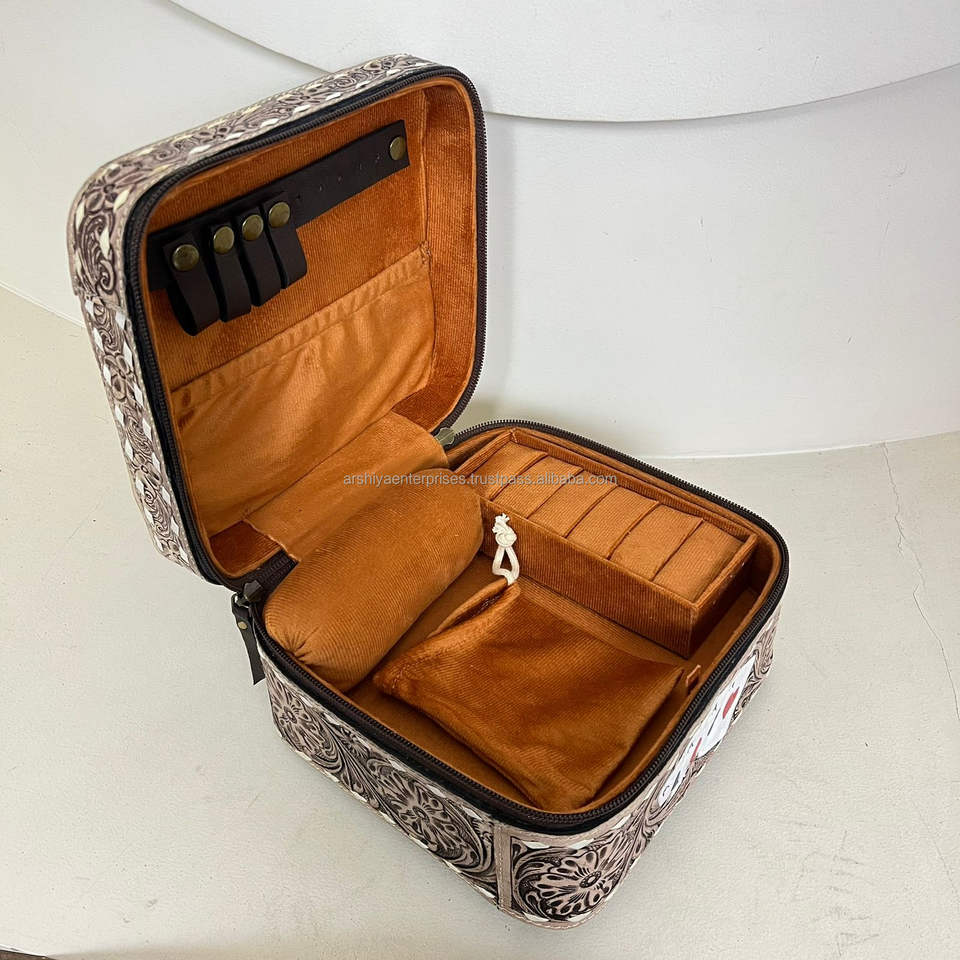 Product name:Hand Tooled Cowhide Leather Large Jewelry Case