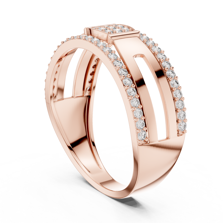 แหวนเพชรหรูหราพร้อมแผงตรงกลางที่มีโครงสร้าง | เครื่องประดับอัญมณีชั้นสูงสมัยใหม่