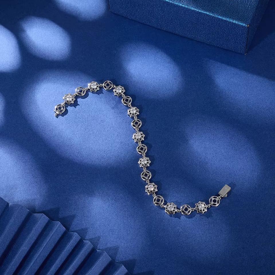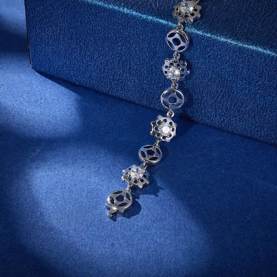 Luxury Trendy Diamond Brass Chain & Link Bracelets Anti-tarnish High Quality Round Cut 5A Cubic Zirconia for Women