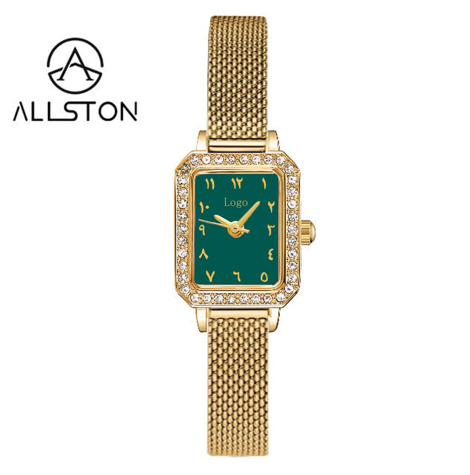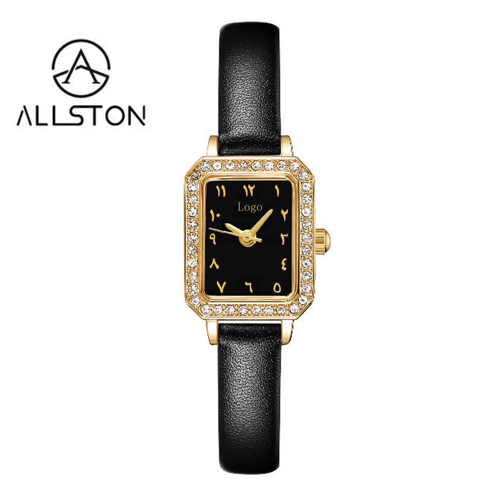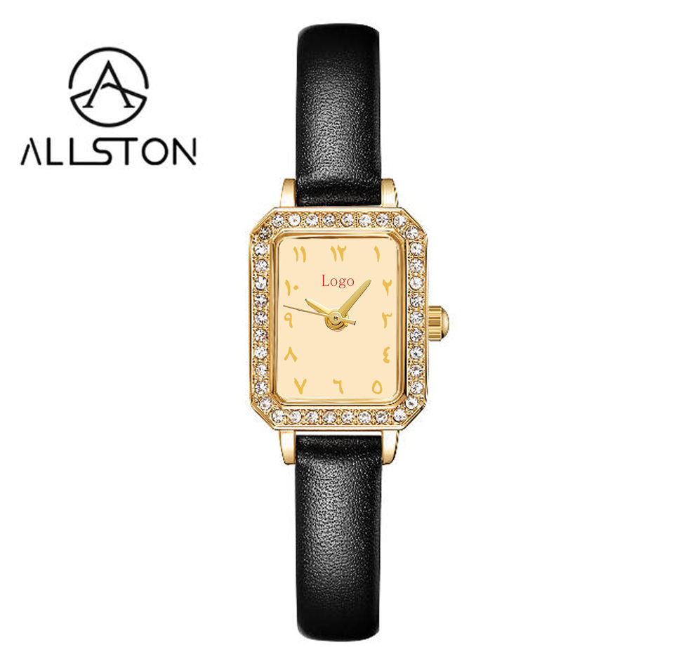 นาฬิกาข้อมือผู้หญิงหรูหราประดับเพชร พร้อมสายหนังแท้ PU หน้าปัดแบบอารบิก ราคาประหยัด รับสกรีนโลโก้