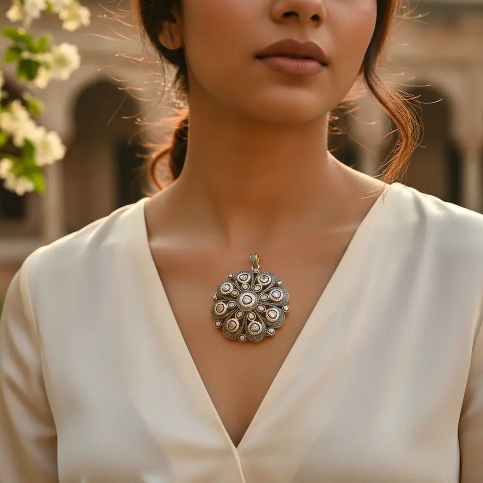 จี้เพชรรูปดอกไม้สุดหรูสำหรับผู้หญิงพร้อมเครื่องประดับชุบทองสุดหรู