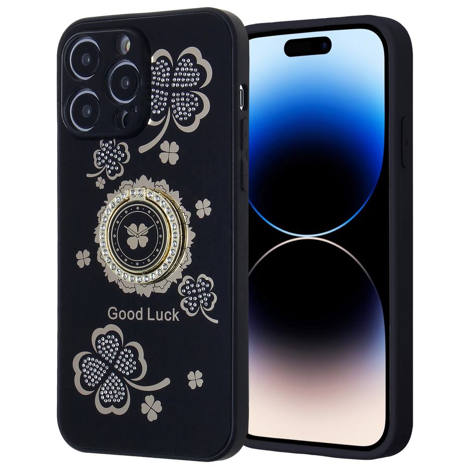 เคสกลิตเตอร์เพชรสุดหรูสำหรับ iPhone 17เคสฝาหลังมีแหวนนำโชคสี่ใบกระเป๋าโทรศัพท์มือถือเพื่อการปกป้องที่ดีที่สุด