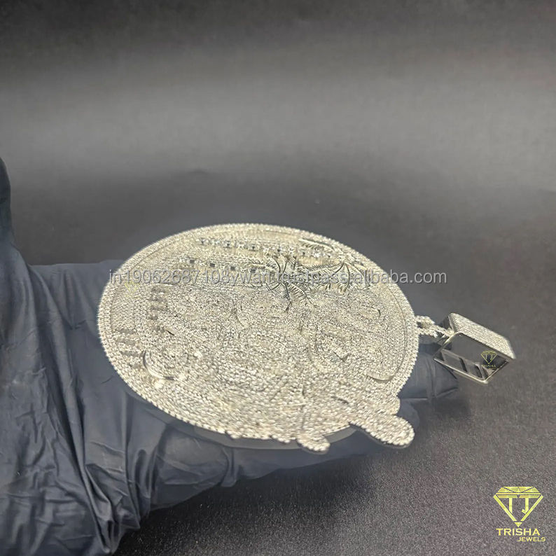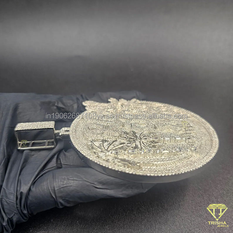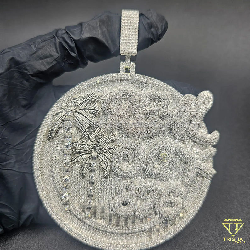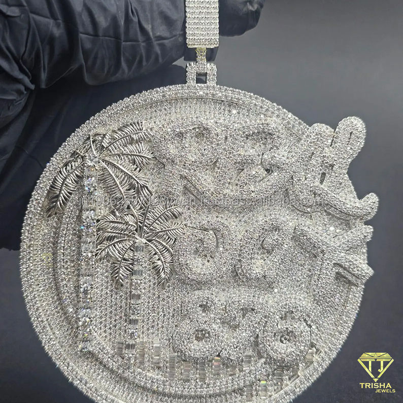 จี้เพชรทรงกลมหรูหรา ดีไซน์ต้นปาล์ม ประดับเพชรเต็มชิ้น สไตล์ฮิปฮอป