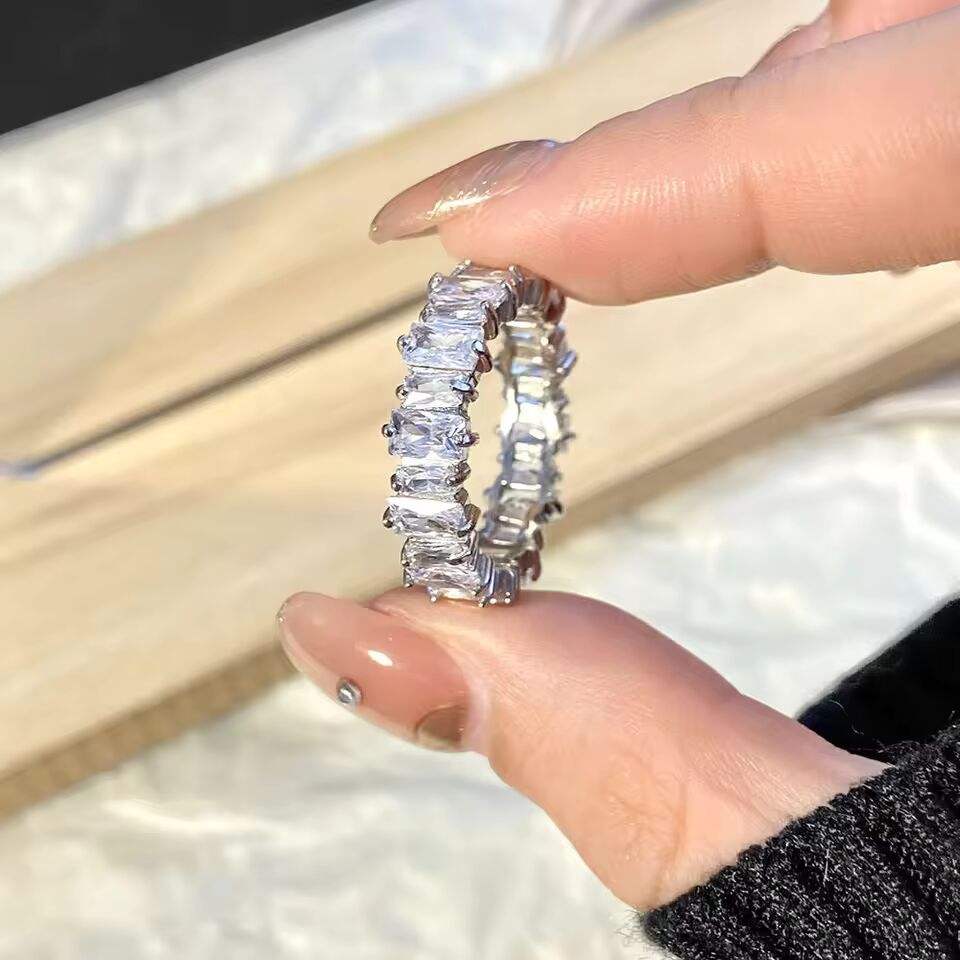 แหวนเพชรทรงอิสระแบบเต็มวง ดีไซน์หรูหรา ผลิตด้วยเพชรเลี้ยงในห้องปฏิบัติการ ทรงเหลี่ยมเจียระไนแบบบริลเลียนท์ ชุบเงิน สำหรับทั้งชายและหญิง เหมาะสำหรับงานปาร์ตี้สไตล์ฮิปฮอป